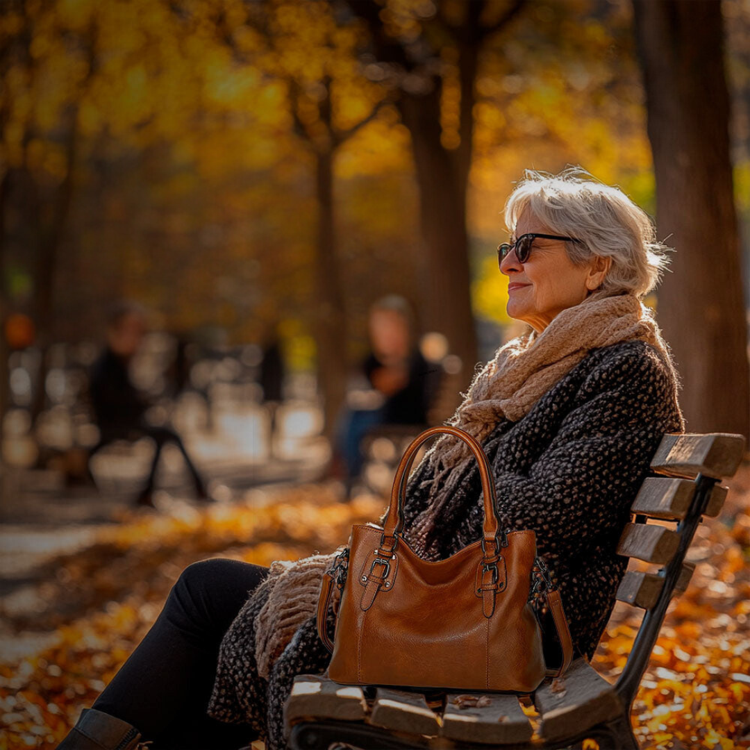 - Artigianato in Pelle Premium: L'Attrazione Graziosa di Sienna è realizzata in vera pelle di alta qualità, offrendo un accessorio robusto e lussuoso che resiste all'uso quotidiano. La pelle è resistente ai graffi, alle macchie e all'acqua, assicurando che la tua borsa rimanga elegante e resistente nel tempo.